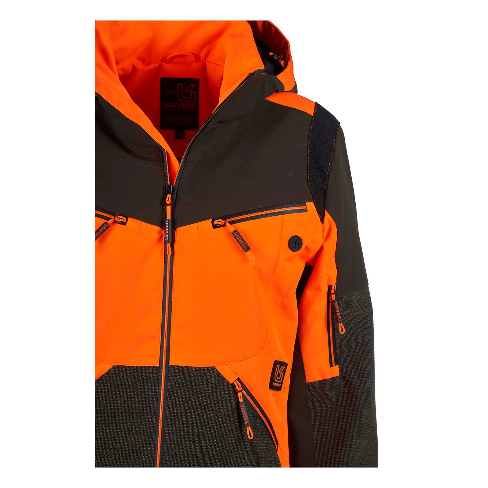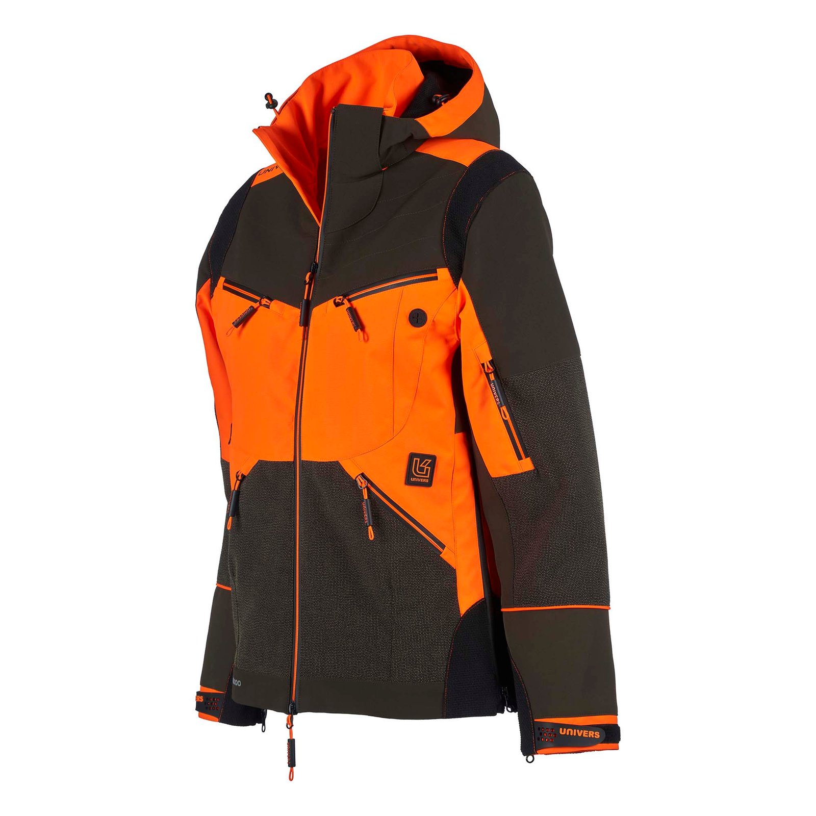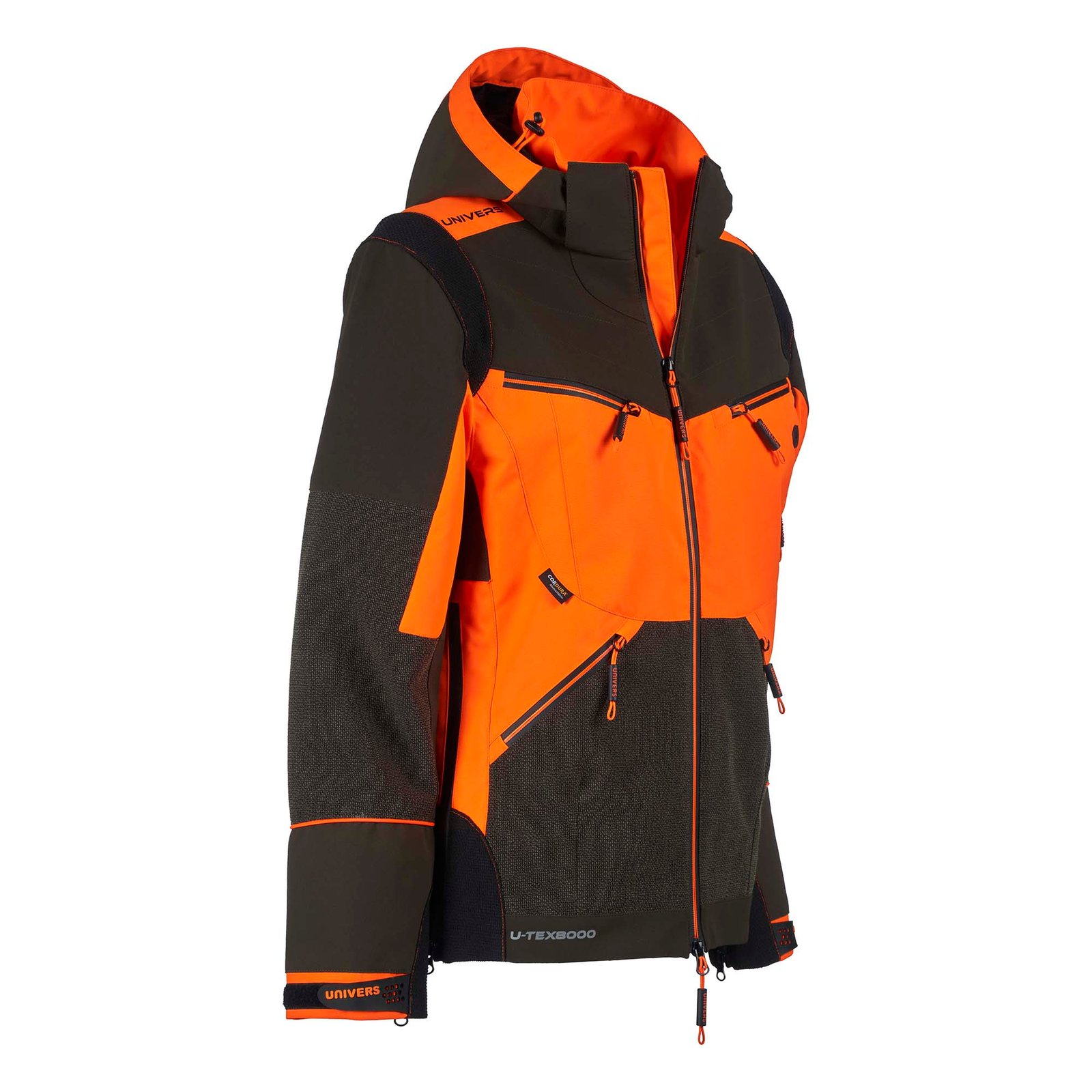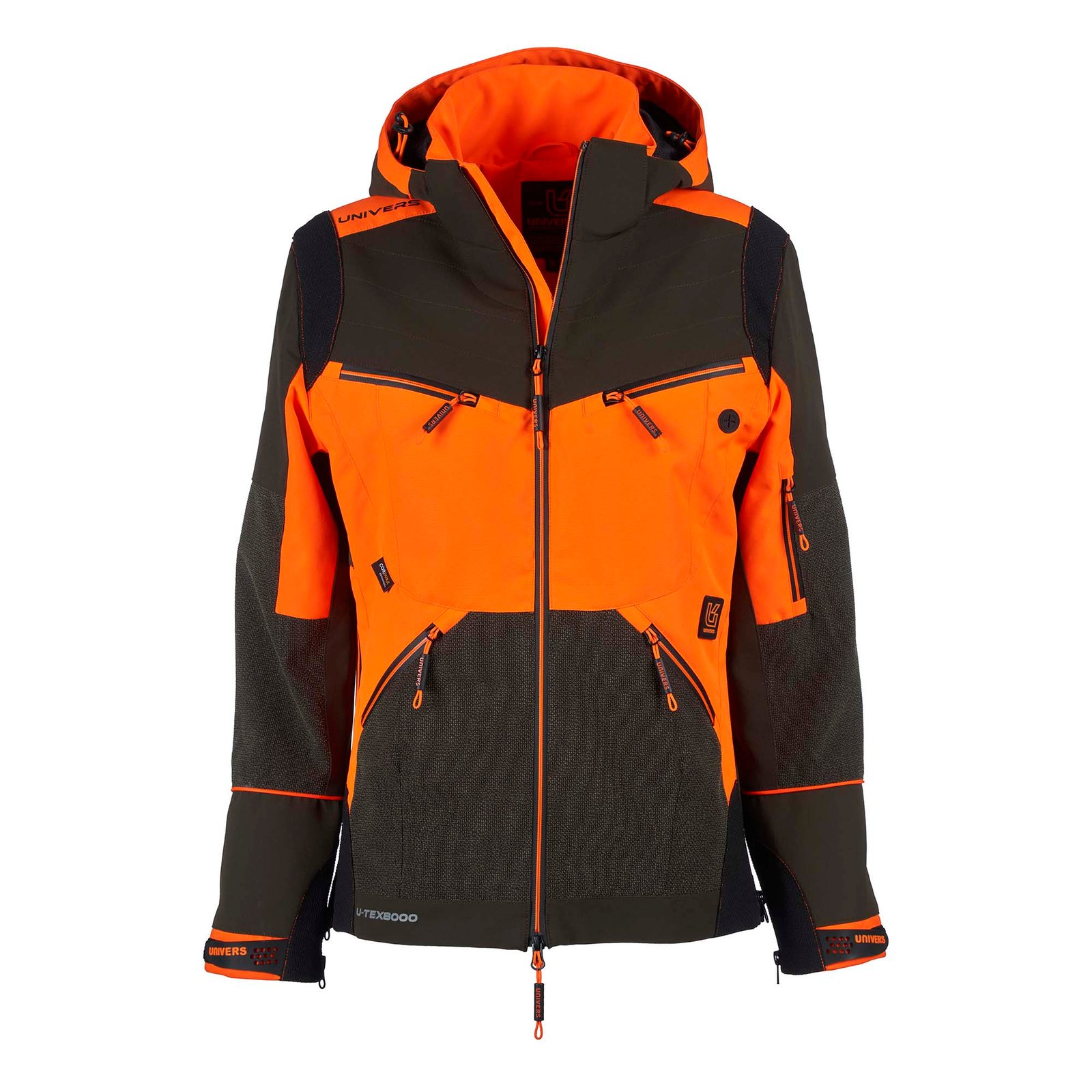Veste de chasse doublée qui offre des performances élevées en combinant confort et robustesse. Le vêtement est adapté aux parcours forestiers et se compose de trois tissus : nylon extensible, polyester Oxford et renforts en Cordura® anti-déchirure laminés avec membrane U-Tex imperméable et respirante. Deux poches avant pratiques avec fermeture éclair étanche, deux poches poitrine avec fermeture éclair étanche dont une pour appareil satellite. Deux fermetures éclair latérales utiles permettant l’ouverture sur les hanches pour un plus grand confort. Les poignets sont réglables avec velcro et la fermeture éclair au bas des manches augmente leur circonférence. Carquois arrière avec fermeture éclair étanche, poche intérieure avec fermeture éclair, capuche amovible.